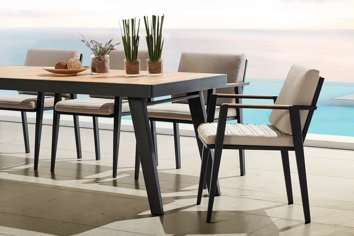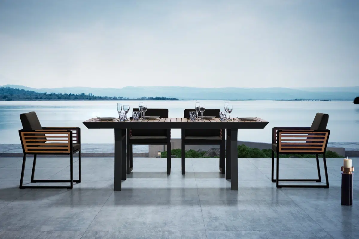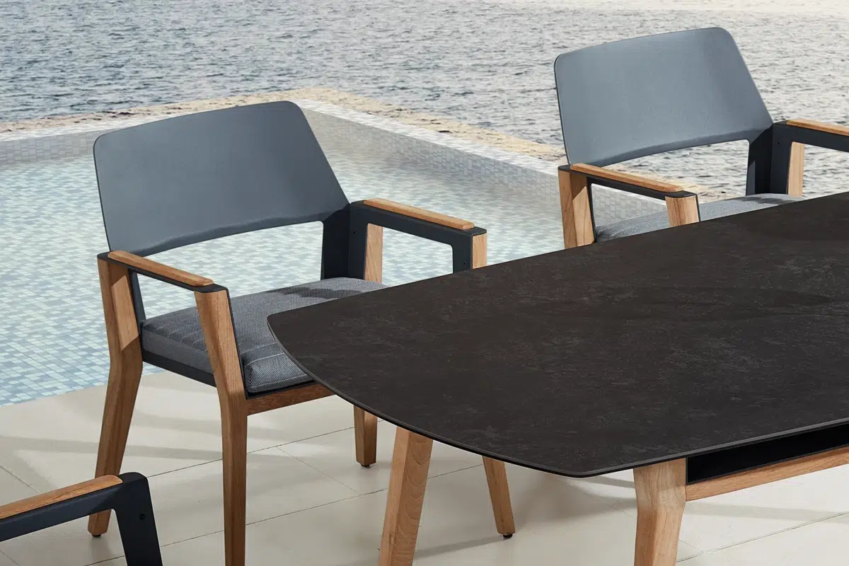 meble aluminiowe New York Higold z detalami z drewna tekowego