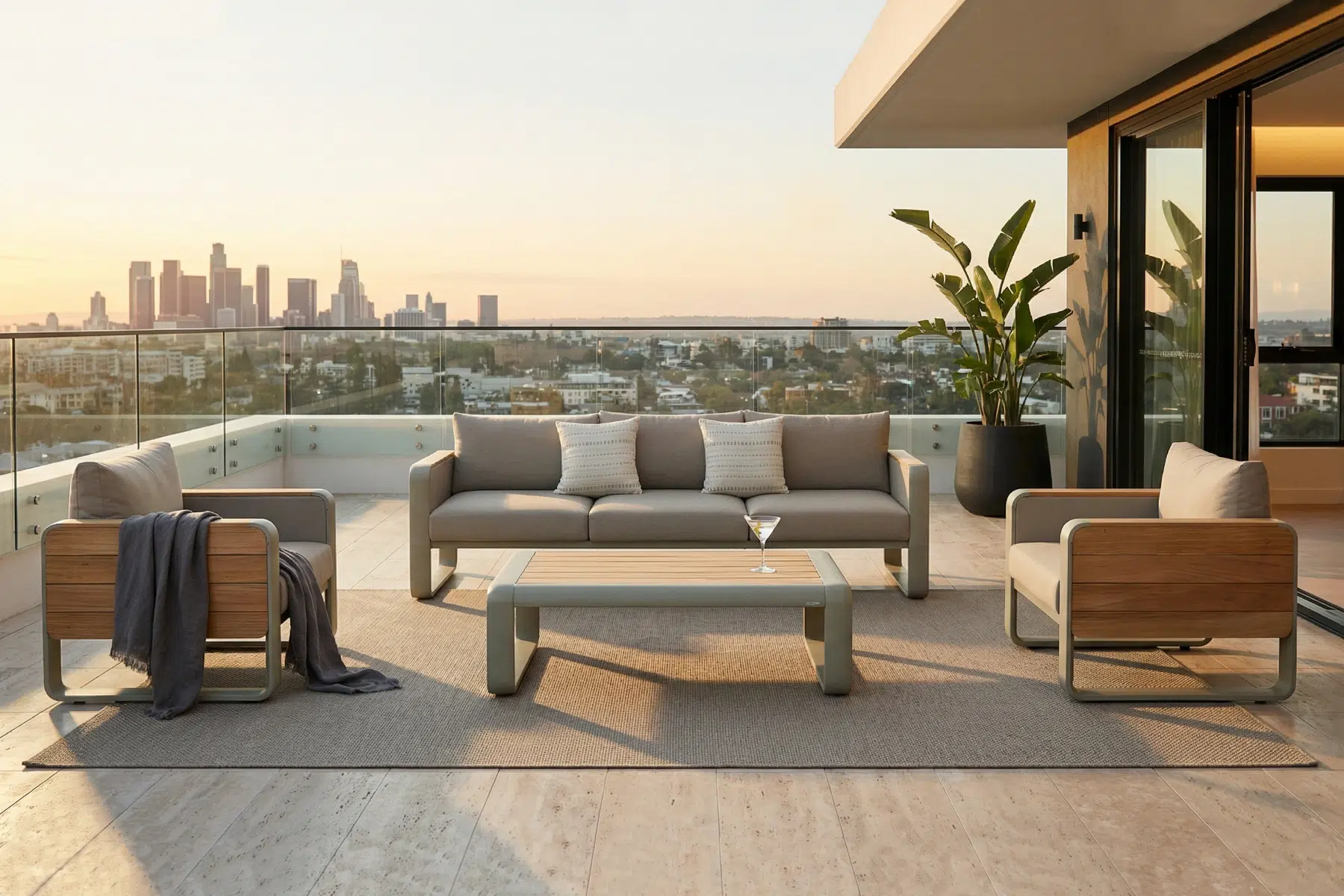 W kolekcji mebli tarasowych Nottingham widać charakterystyczne podejście marki HIGOLD do materiałów. Aluminium daje stabilną bazę dla całej konstrukcji i dobrze radzi sobie w warunkach zewnętrznych. Drewno tekowe z czasem zmienia swój odcień i nabiera bardziej szlachetnego charakteru. Całość została zaprojektowana tak, żeby zachować swój luksusowy charakter bez względu na trudy codziennego użytkowania na zewnątrz. Materiały nie dominują nad formą, ale ją wspierają — zarówno wizualnie, jak i w praktyce.