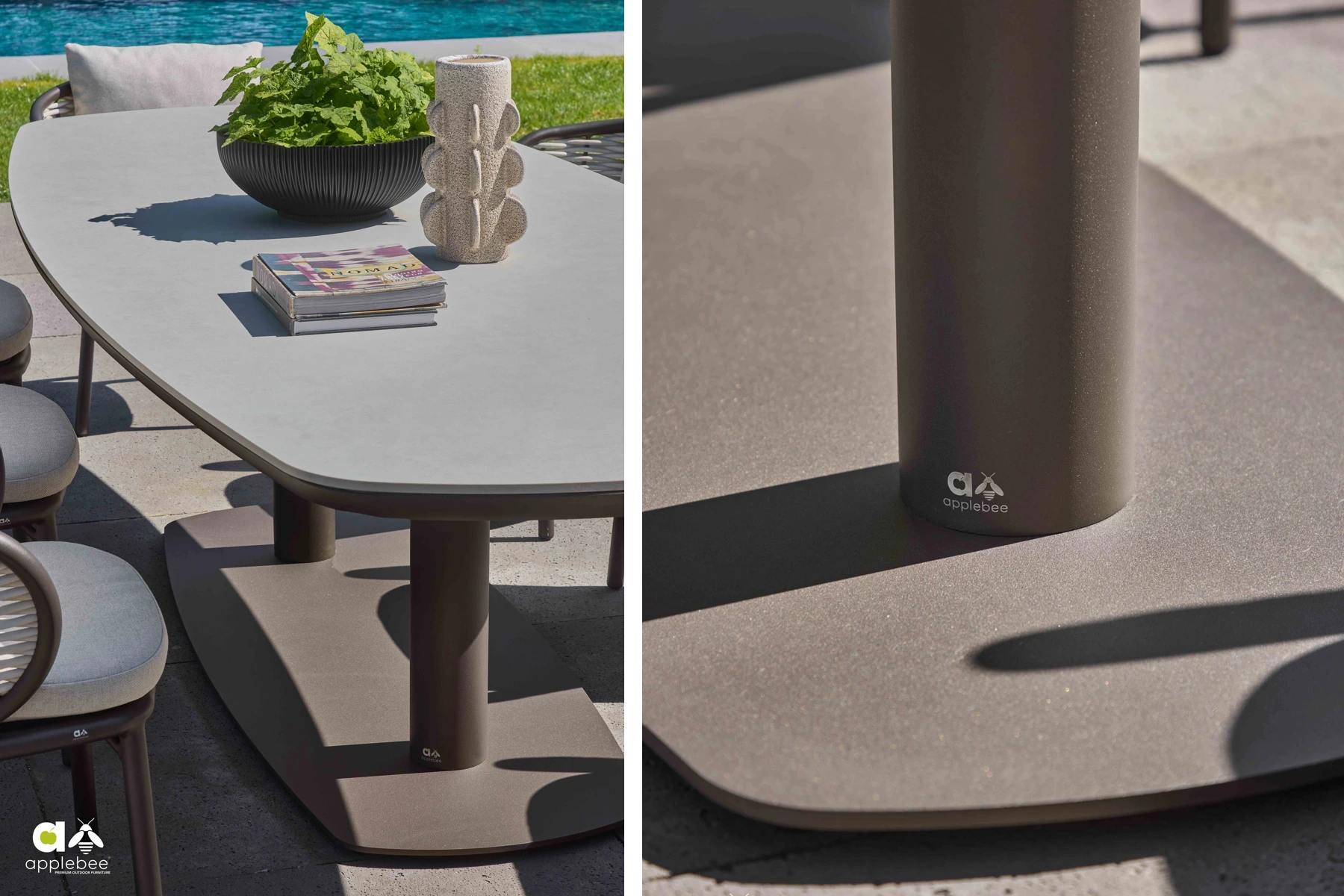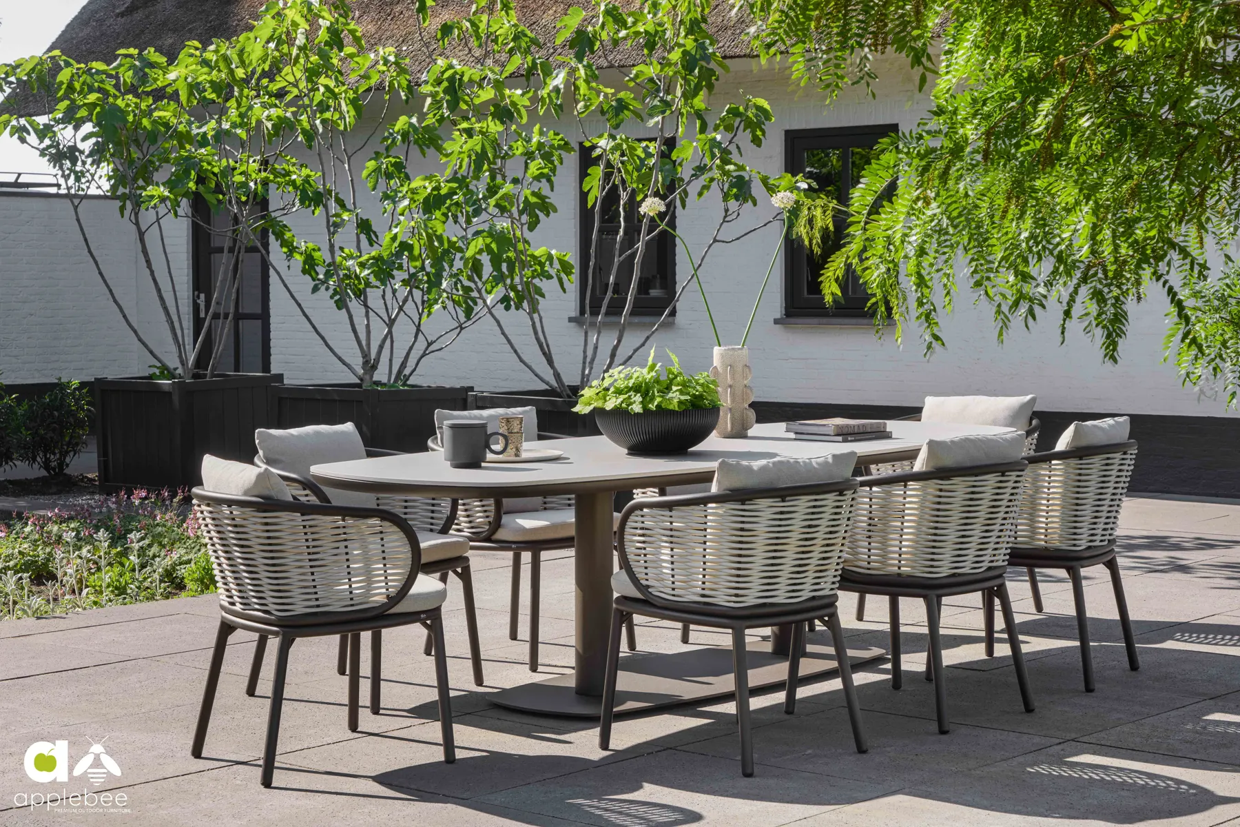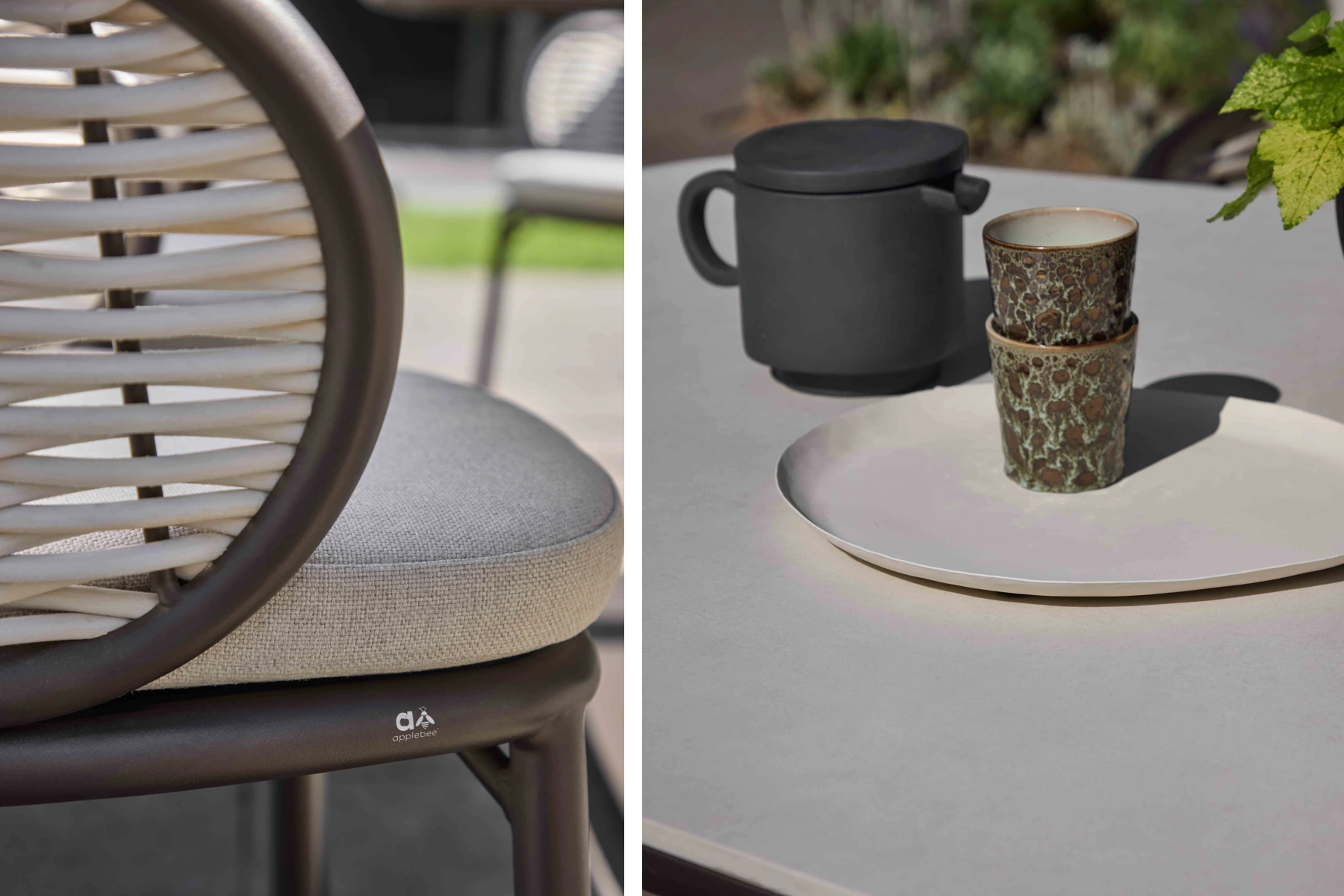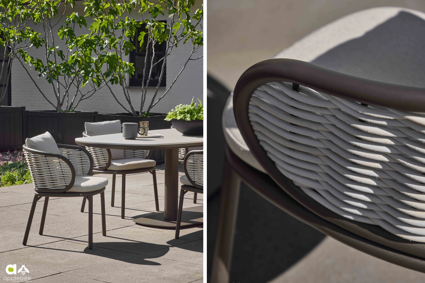 Apple Bee od lat rozwija własną interpretację Dutch Design, w której minimalizm łączy się z innowacjami materiałowymi i rzemieślniczą precyzją. Meble mają być proste, funkcjonalne i przyjemne w codziennym użytkowaniu, a jednocześnie odporne na czas. W Pine Key Bronze tę filozofię czuć w każdym detalu — od klarownej linii stołu ogrodowego po dopracowane krawędzie plecionki technorattanowej Biculair®.