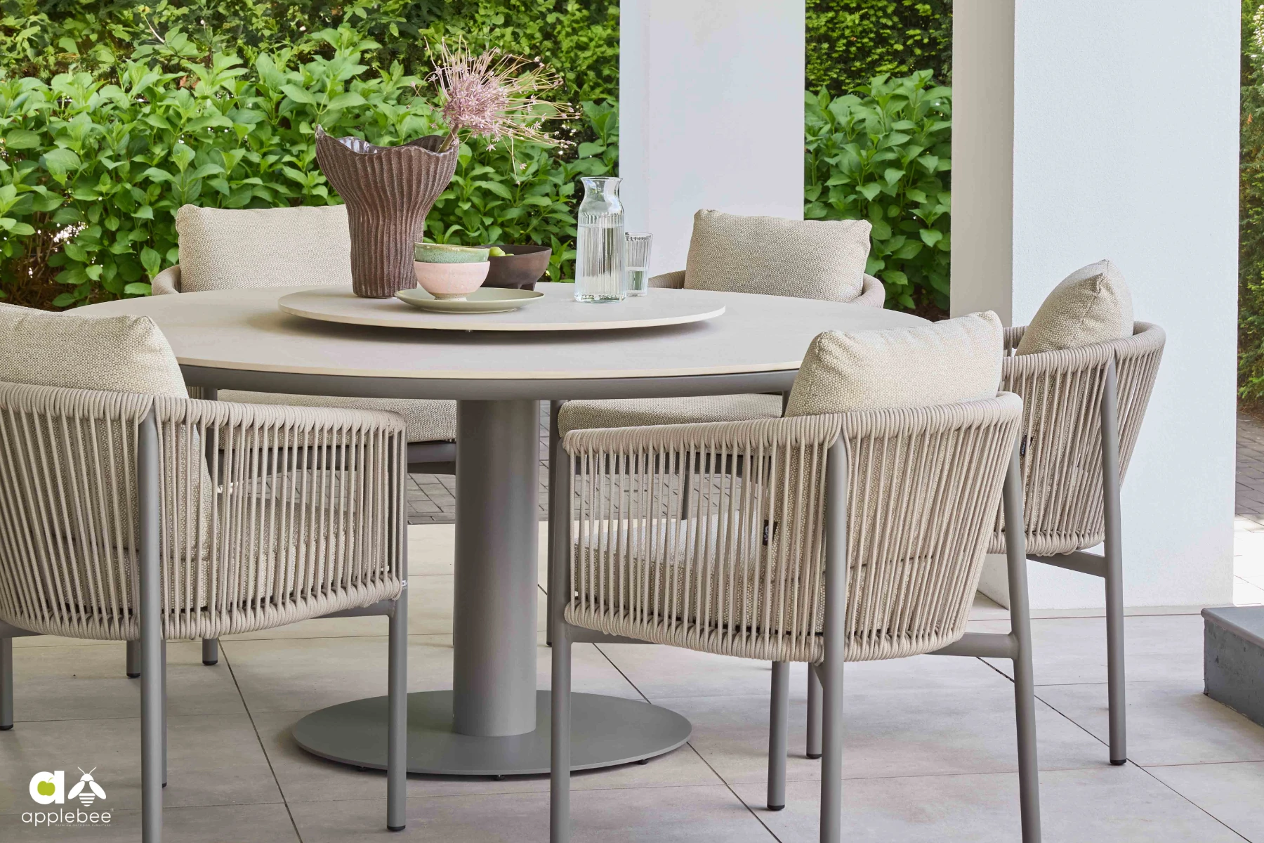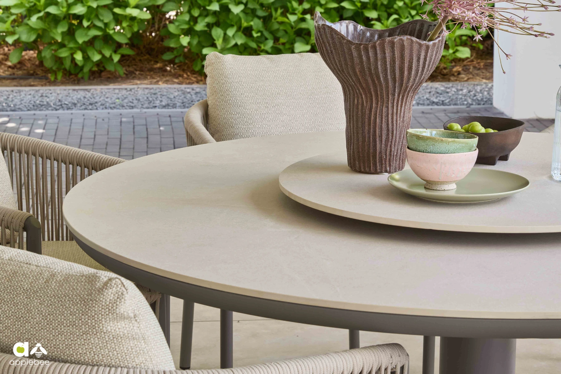 okrągły stół ogrodowy Bora Bora Taupe z funkcją obrotowego blatu