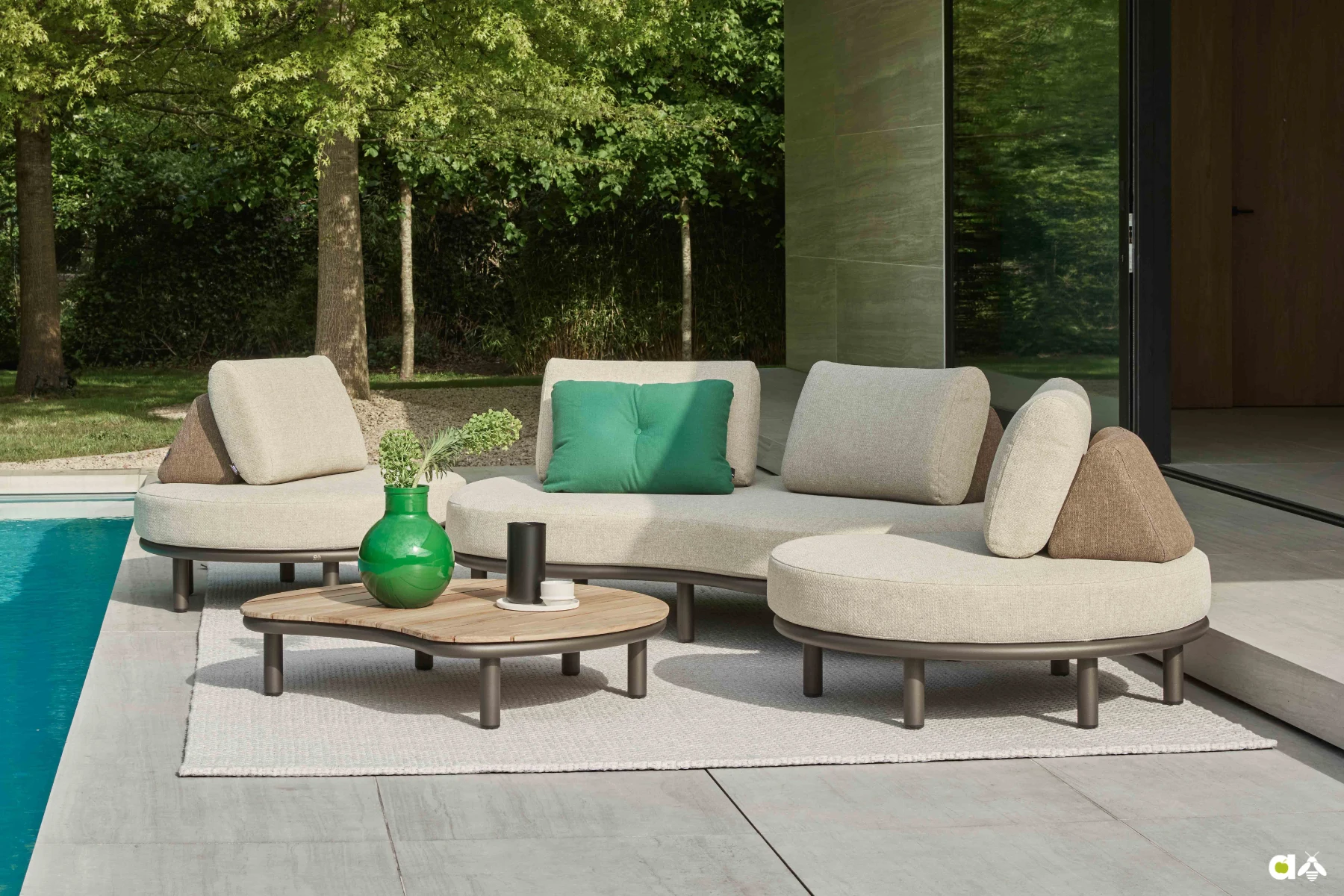 Moon Island Bronze, zaprojektowany przez Ralfa de Bruina, opiera się na bardziej organicznej linii. Modułowe elementy pozwalają elastycznie kształtować układ mebli w zależności od przestrzeni.