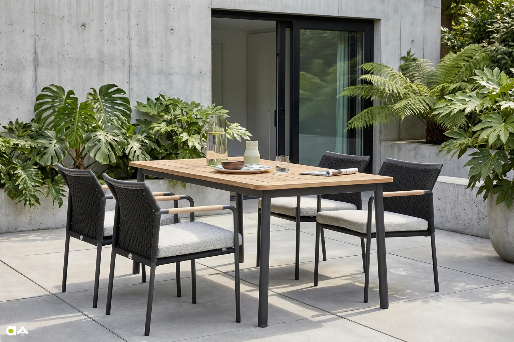 Uważaj jednak, aby nie przeładować przestrzeni – to pozwoli meblom wybrzmieć i stać się centralnym elementem całej tarasowej kompozycji.